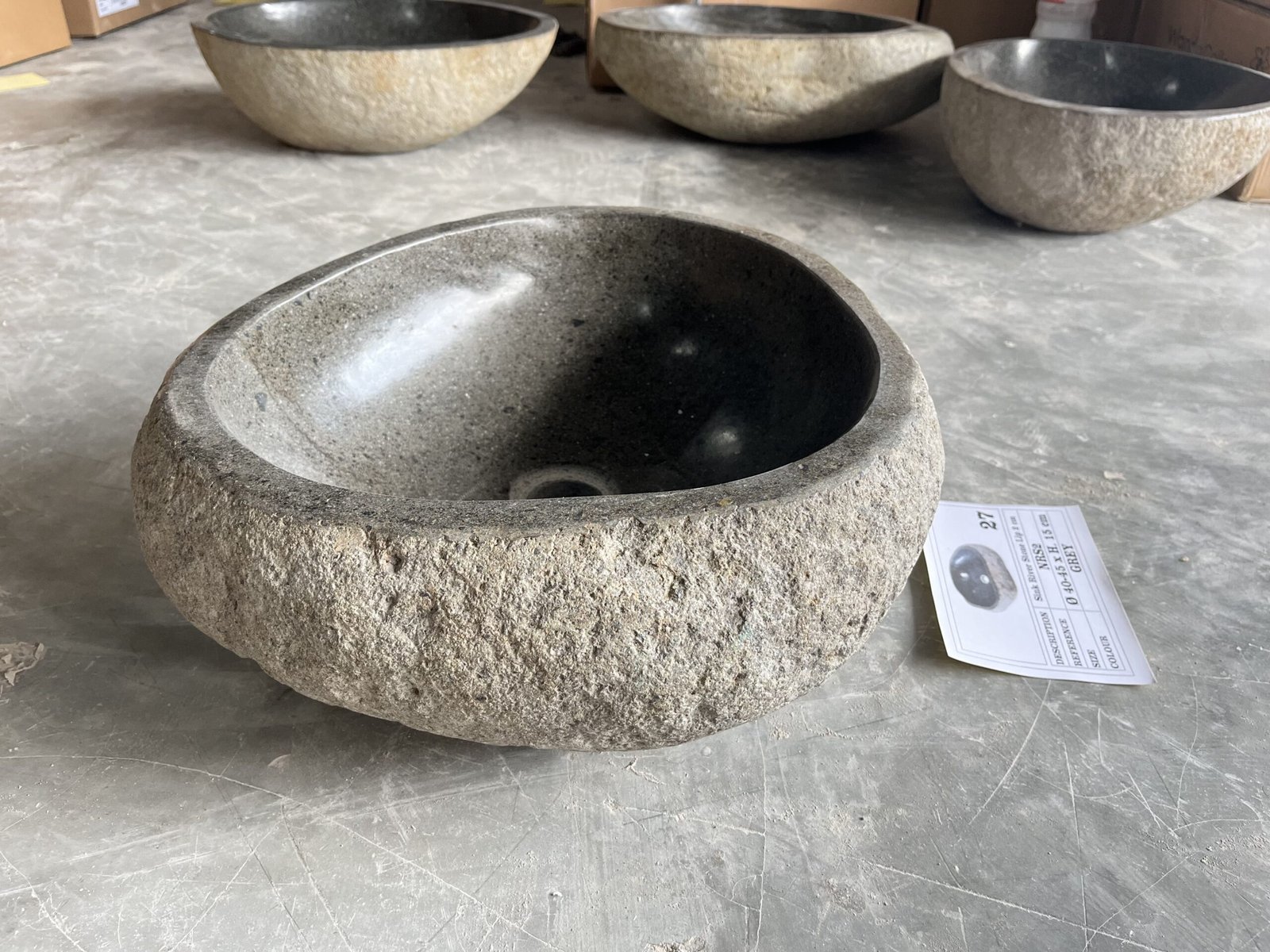 Bachas de piedra de Río de Indonesia. La mayor parte de estas piedras se encuentran en la isla de Java donde cuidadosamente se extraen, se tallan y pulen manual y artesanalmente. Con la colocación adecuada, estas bachas tienen una durabilidad de por vida, contribuyendo al medio ambiente y evitando utilizar artículos perjudiciales para el mismo.