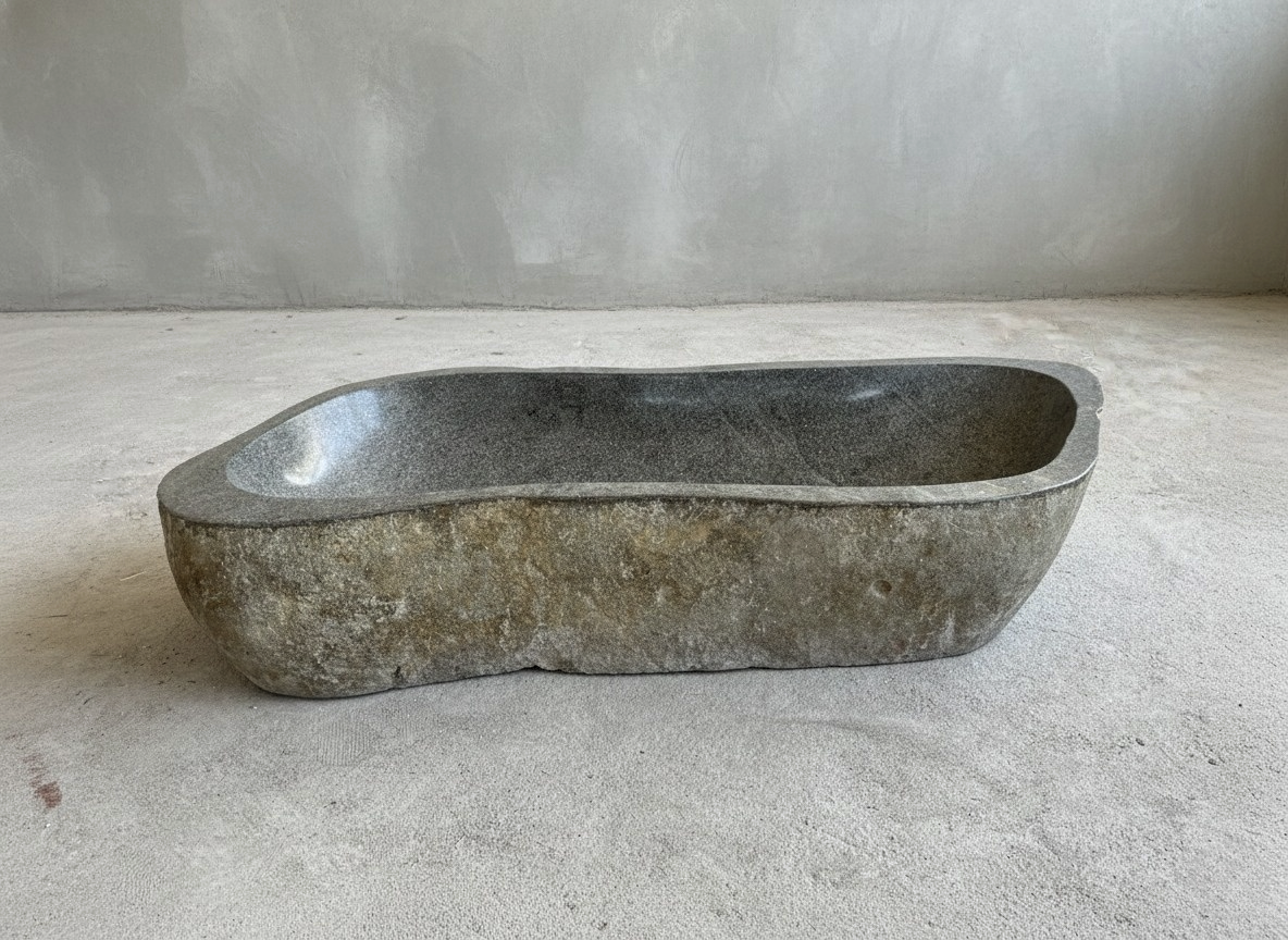 Exclusivas bachas de piedra de río, importadas directamente desde la exuberante isla de Java, en Indonesia. Cada pieza es una obra de arte única, tallada y pulida a mano por expertos artesanos que han perfeccionado su técnica durante generaciones.