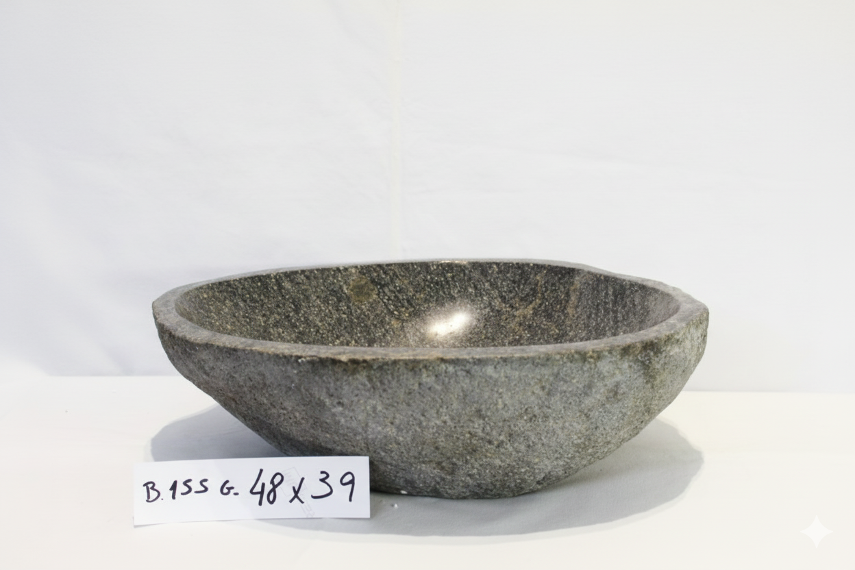 Bachas de piedra de Río de Indonesia. La mayor parte de estas piedras se encuentran en la isla de Java donde cuidadosamente se extraen, se tallan y pulen manual y artesanalmente. Con la colocación adecuada, estas bachas tienen una durabilidad de por vida, contribuyendo al medio ambiente y evitando utilizar artículos perjudiciales para el mismo.