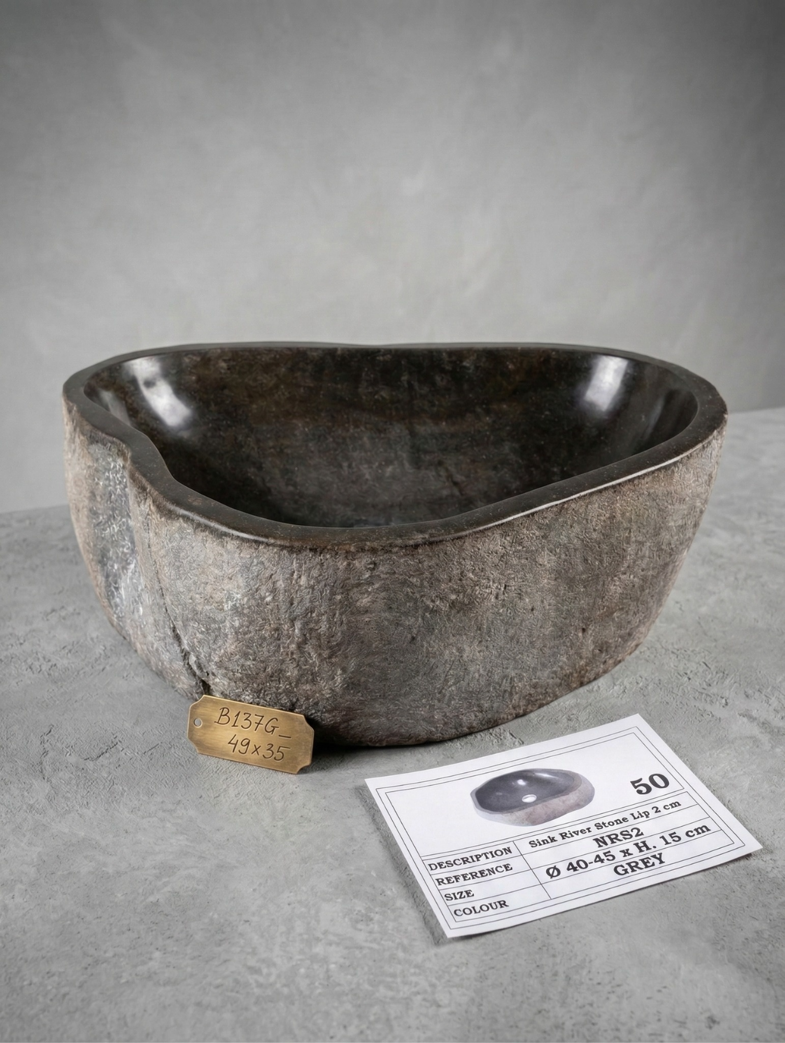 Bachas de piedra de Río de Indonesia. La mayor parte de estas piedras se encuentran en la isla de Java donde cuidadosamente se extraen,  se tallan y pulen manual y artesanalmente. Con la colocación adecuada, estas bachas tienen una durabilidad de por vida, contribuyendo al medio ambiente y evitando utilizar artículos perjudiciales para el mismo.