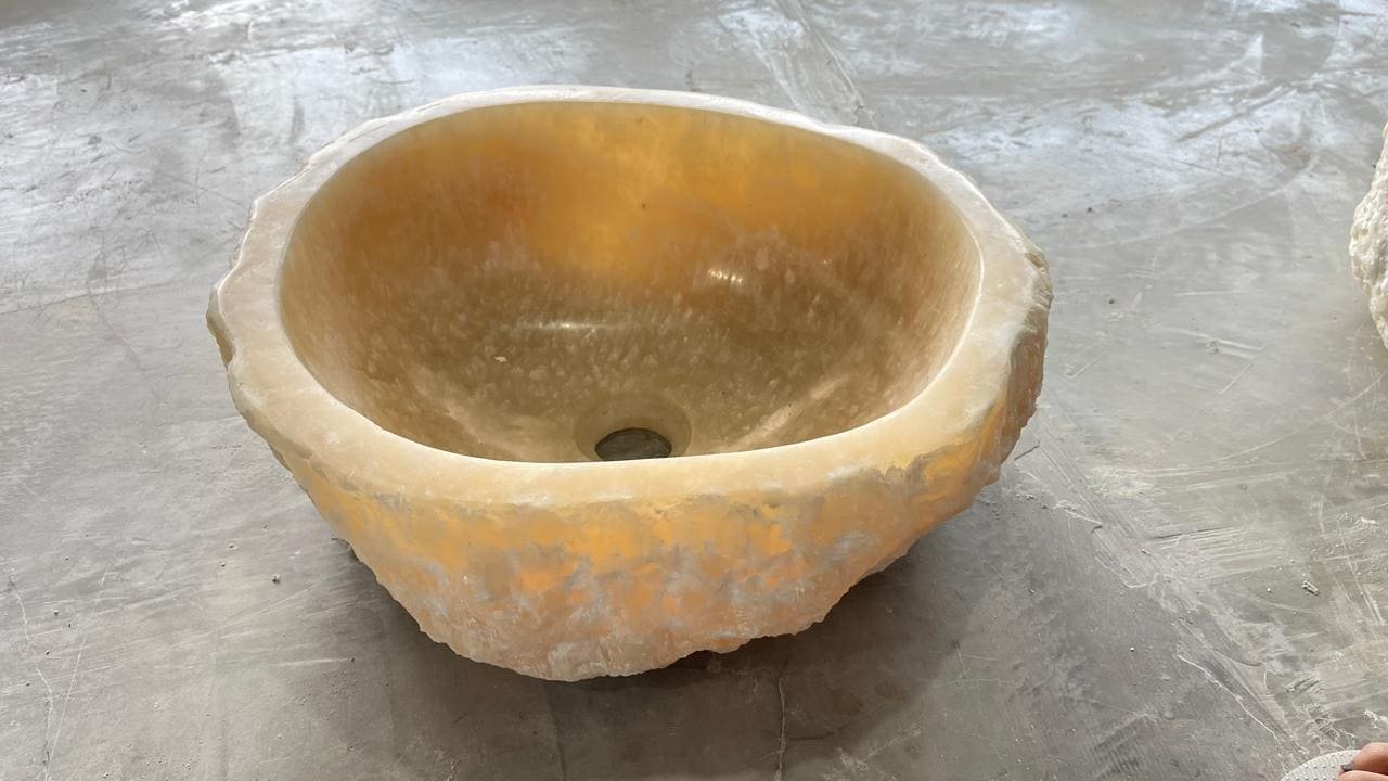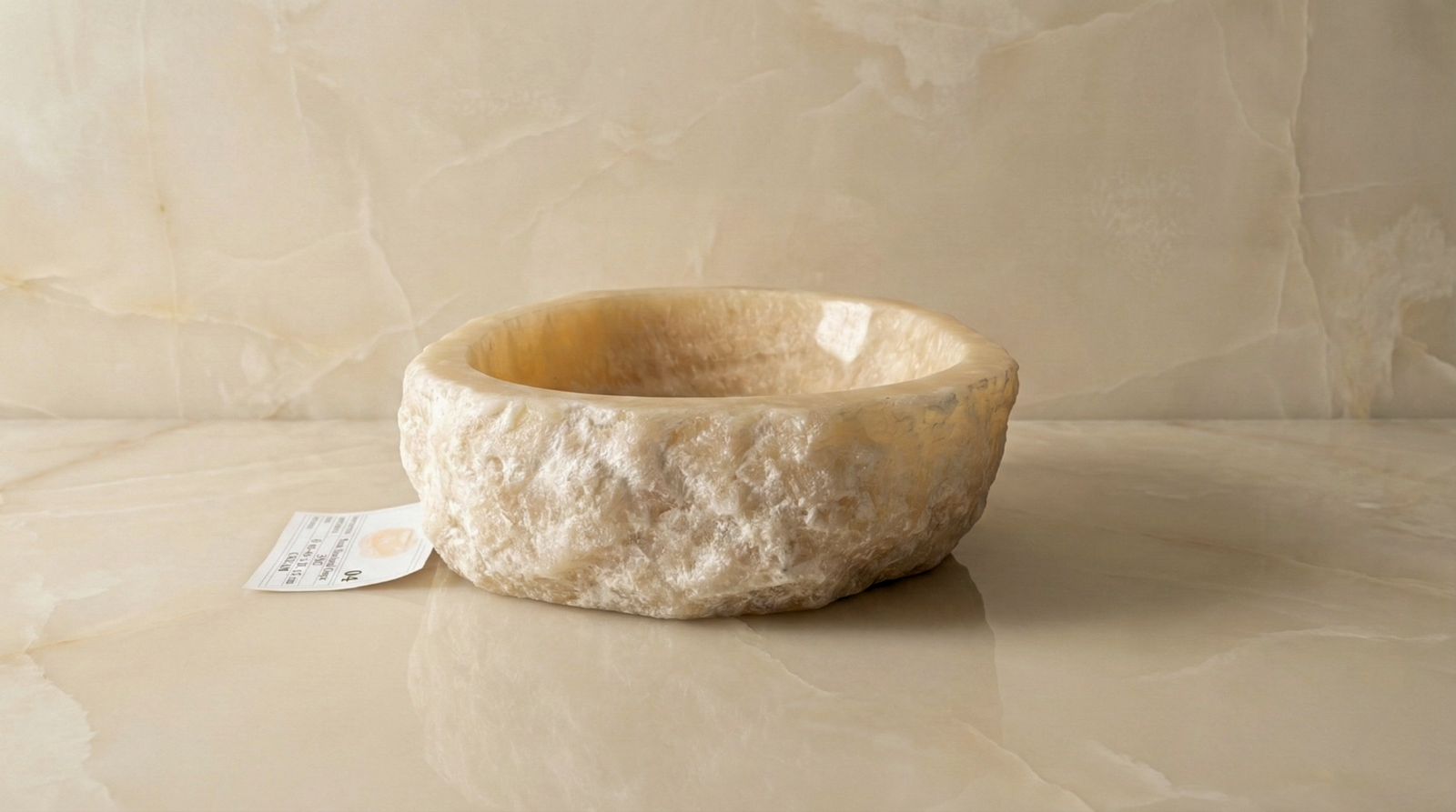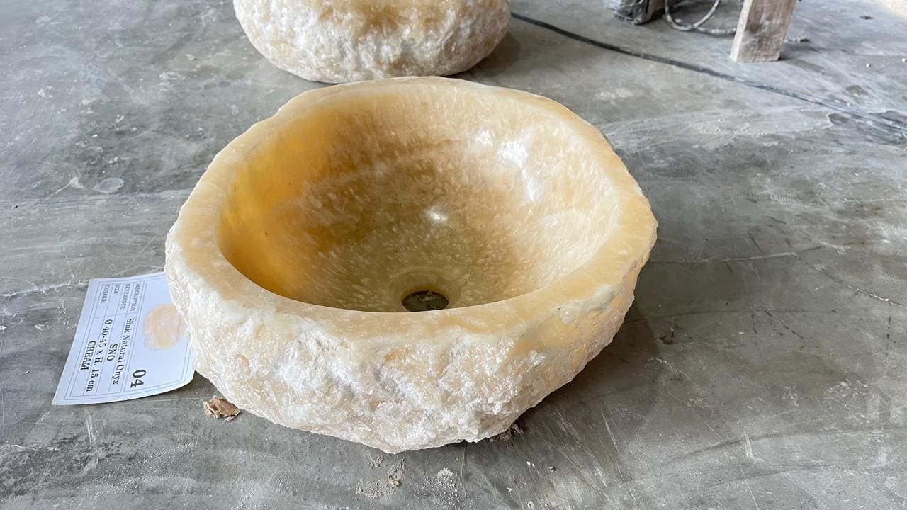 Este magnífica bacha de ónix cincelado a mano es de la isla de de Java, Indonesia.