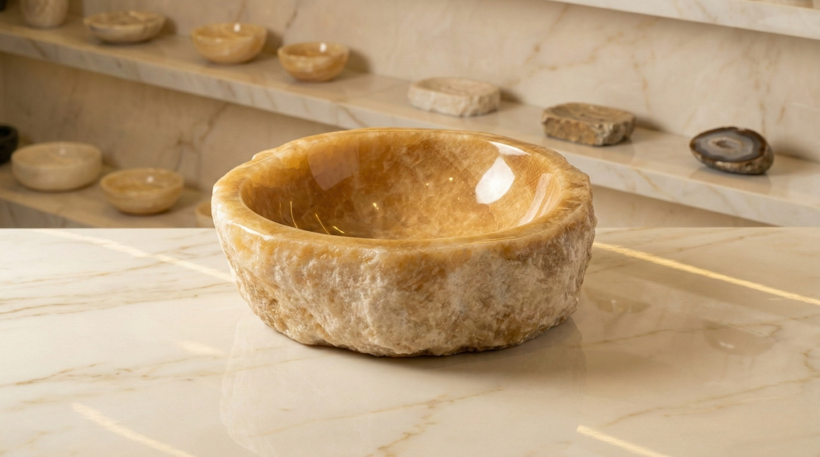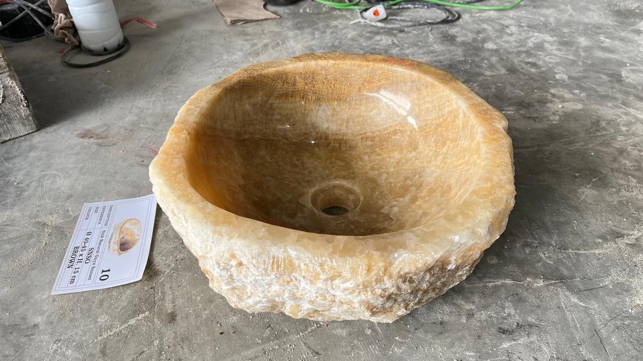Este magnífica bacha de ónix cincelado a mano es de la isla de de Java, Indonesia.