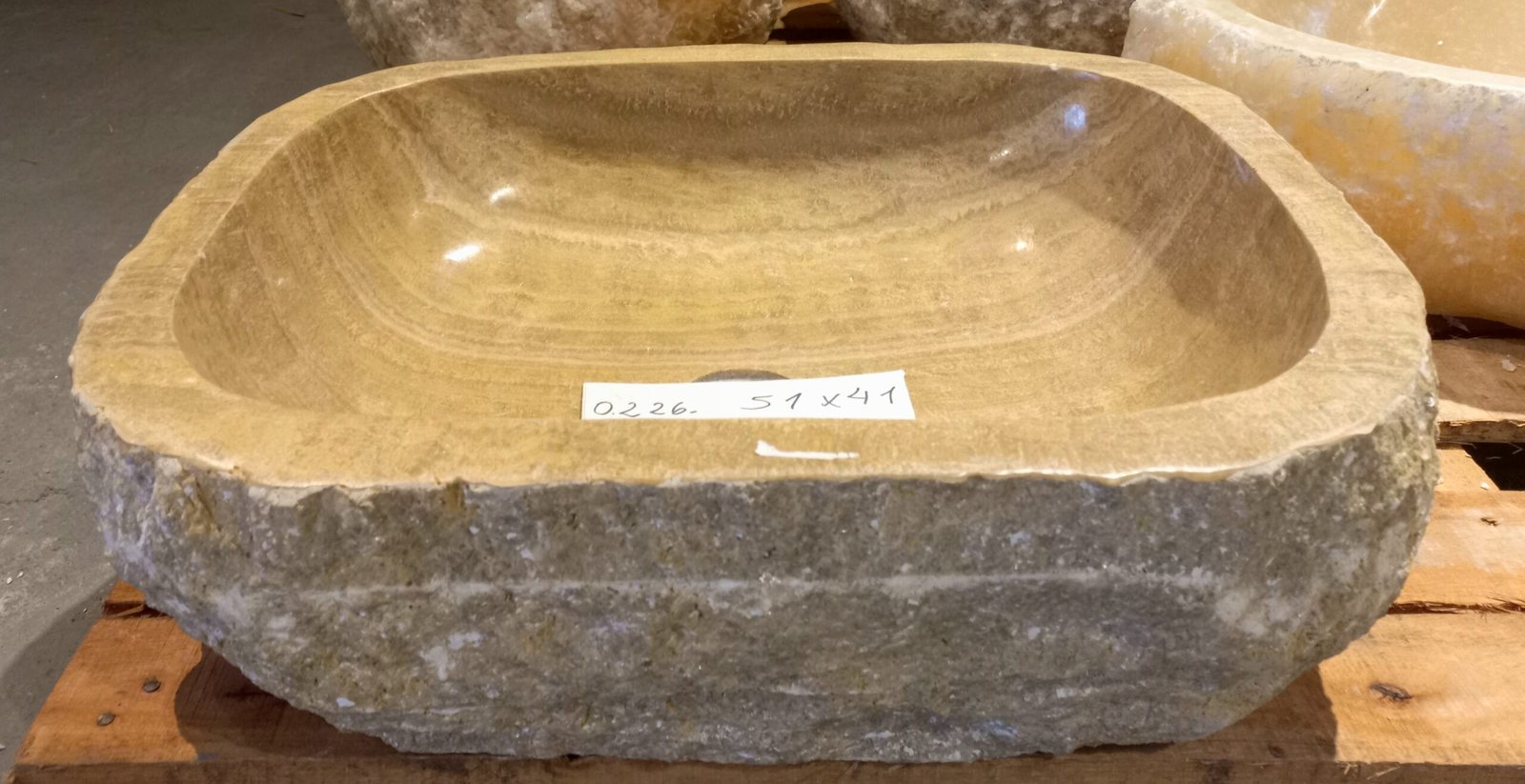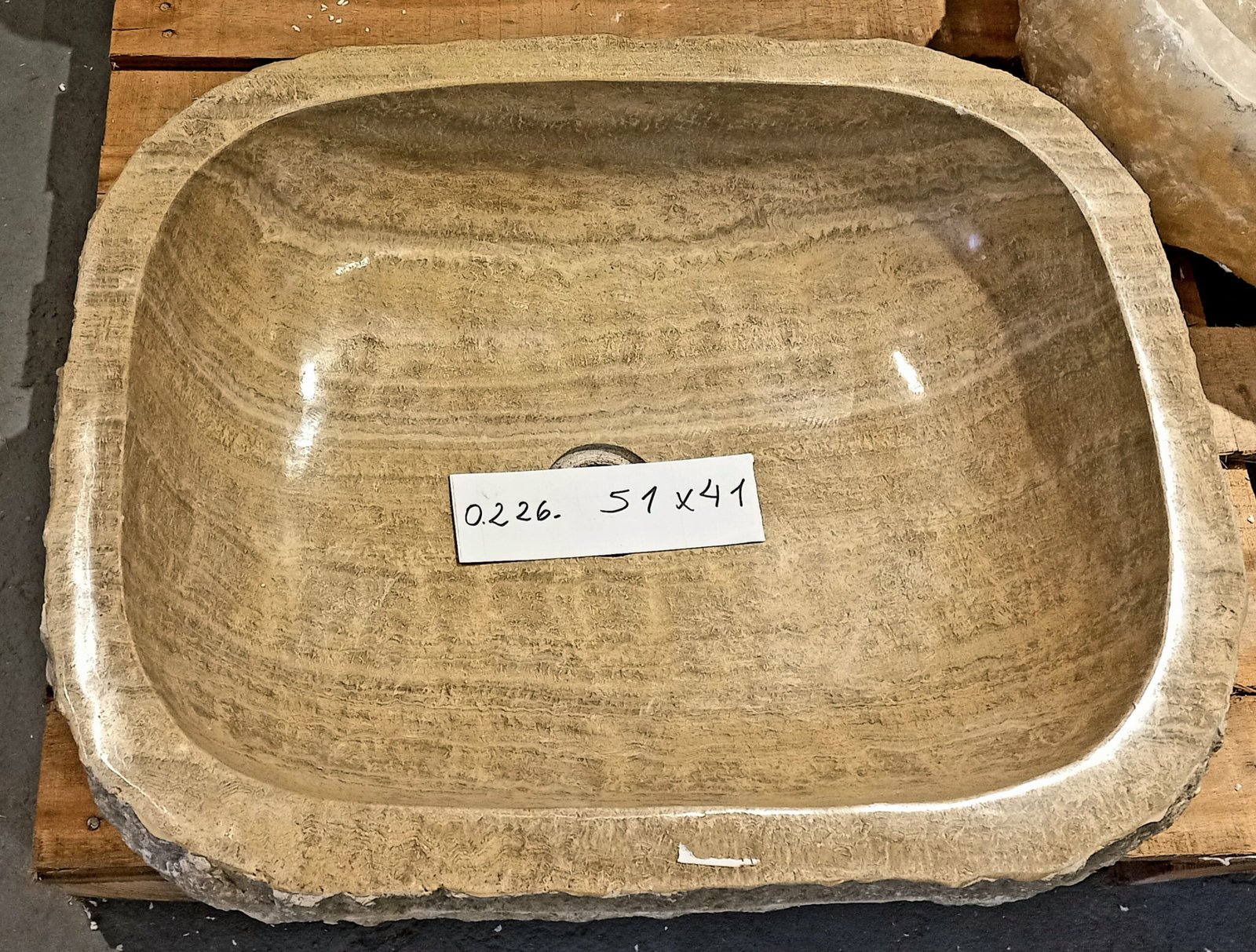 El interior de esta bacha muestra una encantadora variación de color crema, beige con toques de estrías de grano ámbar suave Las variaciones de color cobran vida cuando se introduce agua en la cuenca. El exterior pasa a su textura cruda natural.