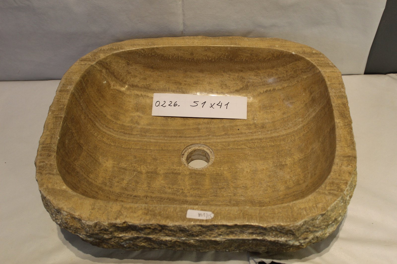 El interior de esta bacha presenta un encantador juego de colores crema y beige, con delicados toques de vetas de grano ámbar suave. Esta paleta de colores se transforma y cobra vida al entrar en contacto con el agua, creando un espectáculo visual único. El exterior, en contraste, conserva la textura cruda y natural de la piedra, añadiendo un elemento rústico y auténtico a la pieza.