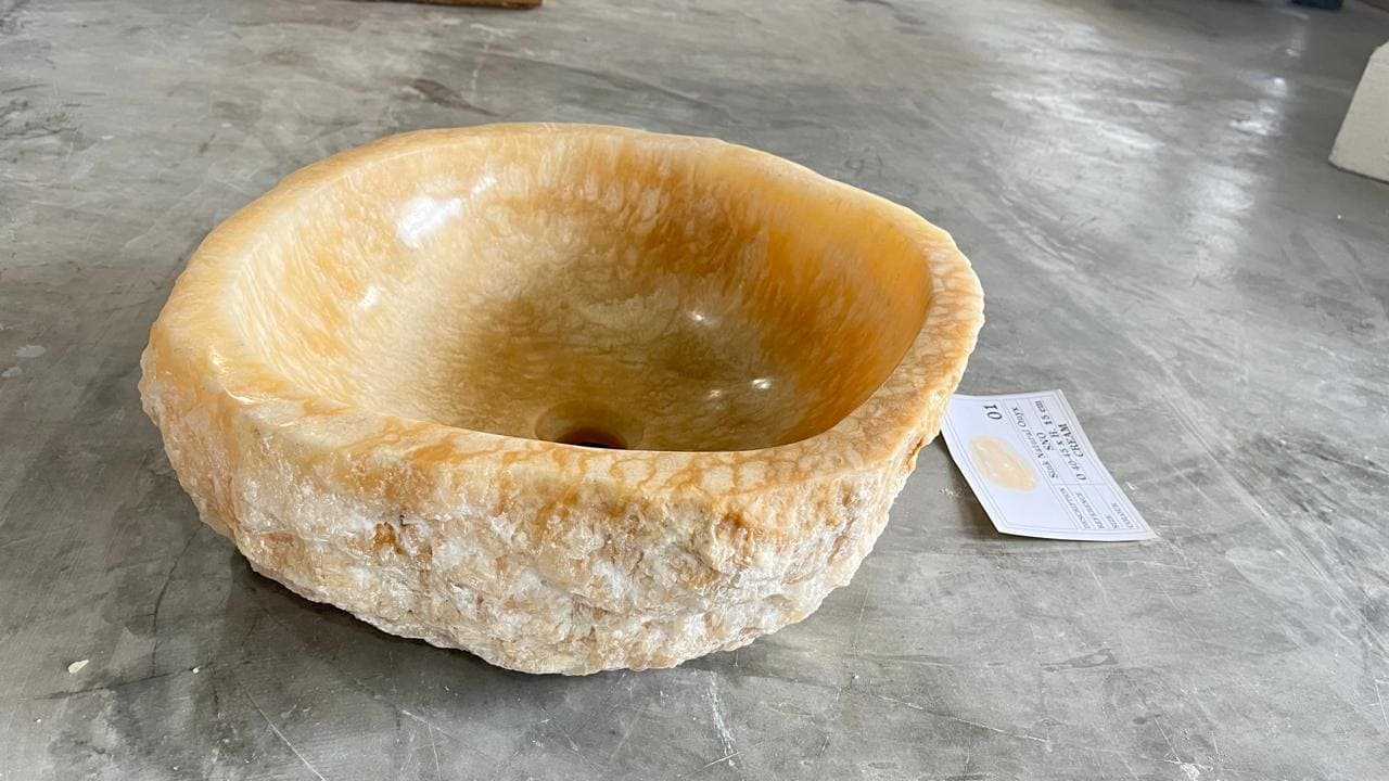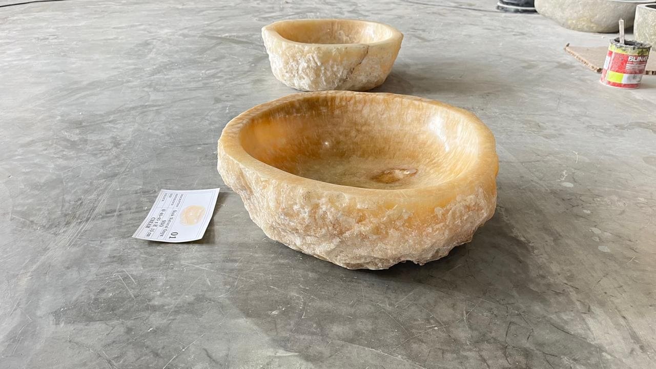 Este magnífica bacha de ónix cincelado a mano es de la isla de de Java, Indonesia.