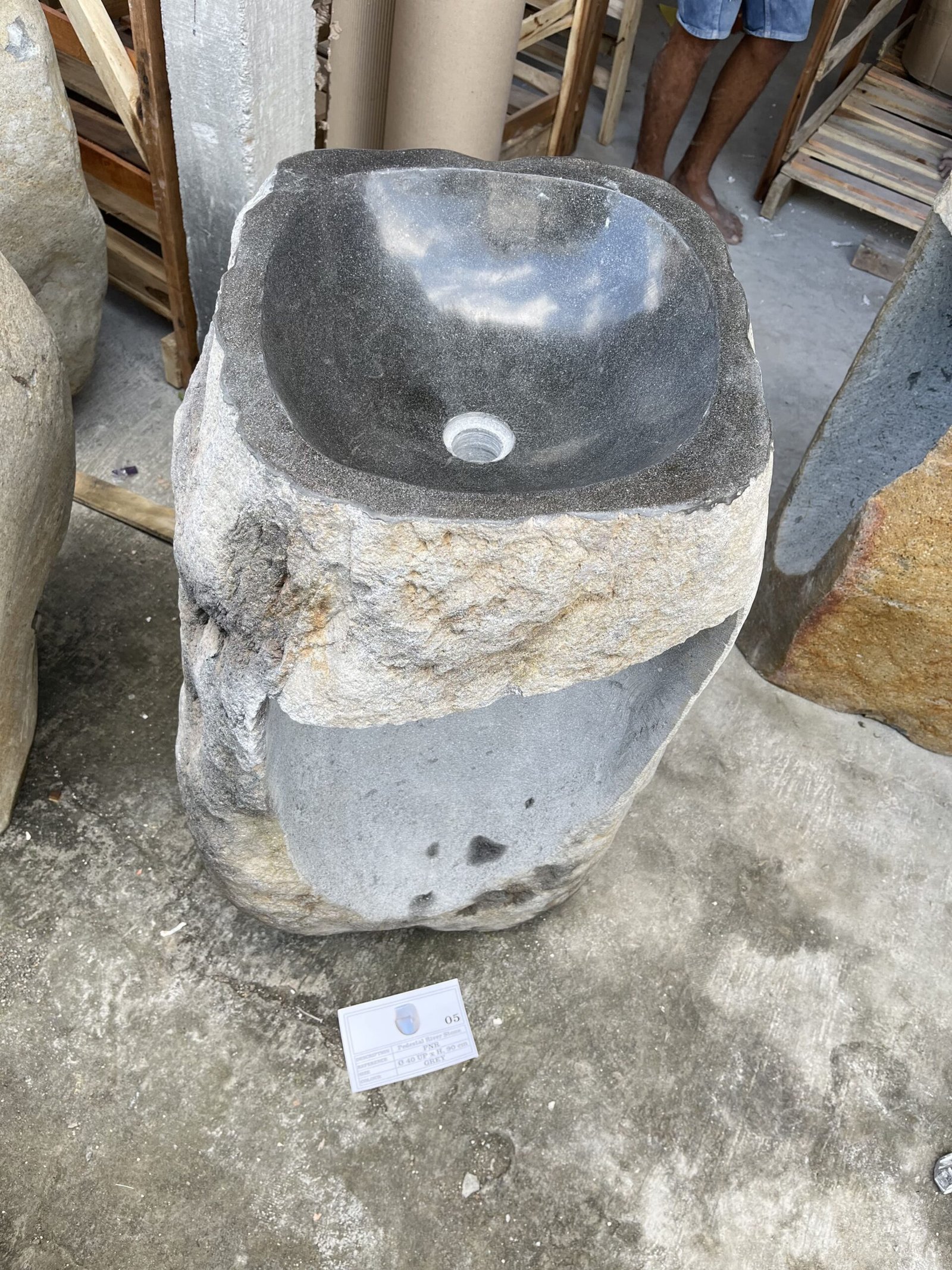 Hermosa Bacha de pedestal de piedra natural tallada en una sola piedra natural en la hermosa Indonesia.