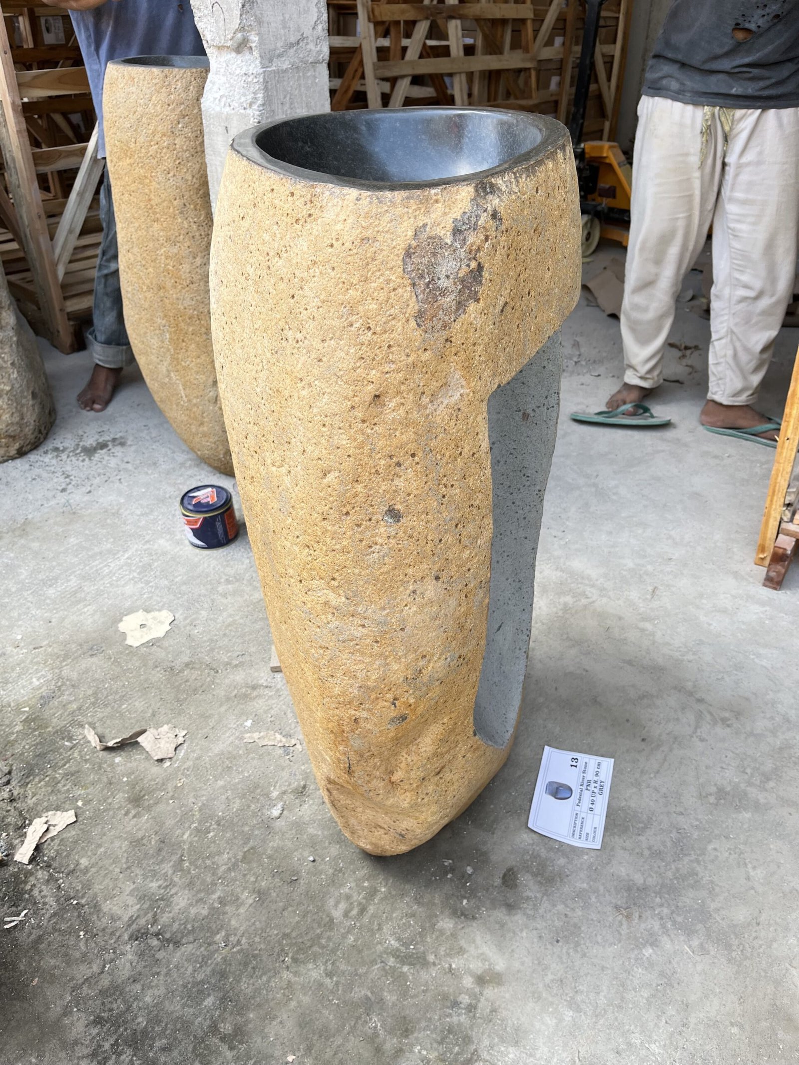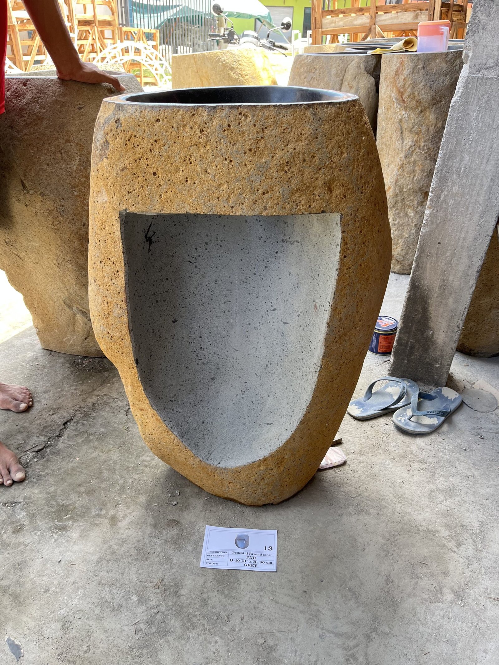 Hermosa Bacha de pedestal de piedra natural tallada en una sola piedra natural en la hermosa Indonesia.
