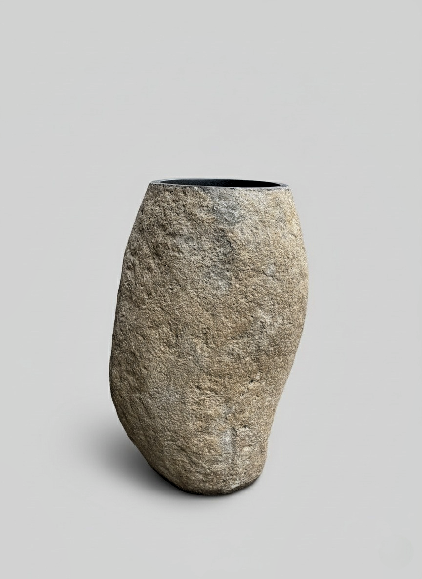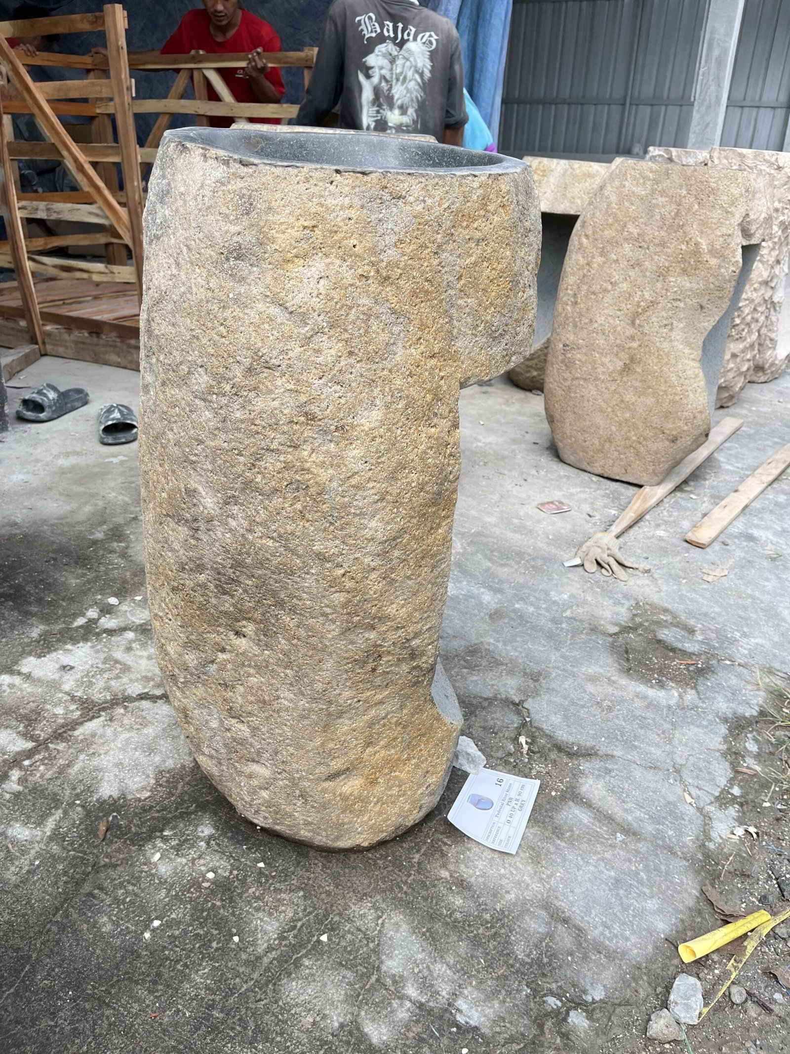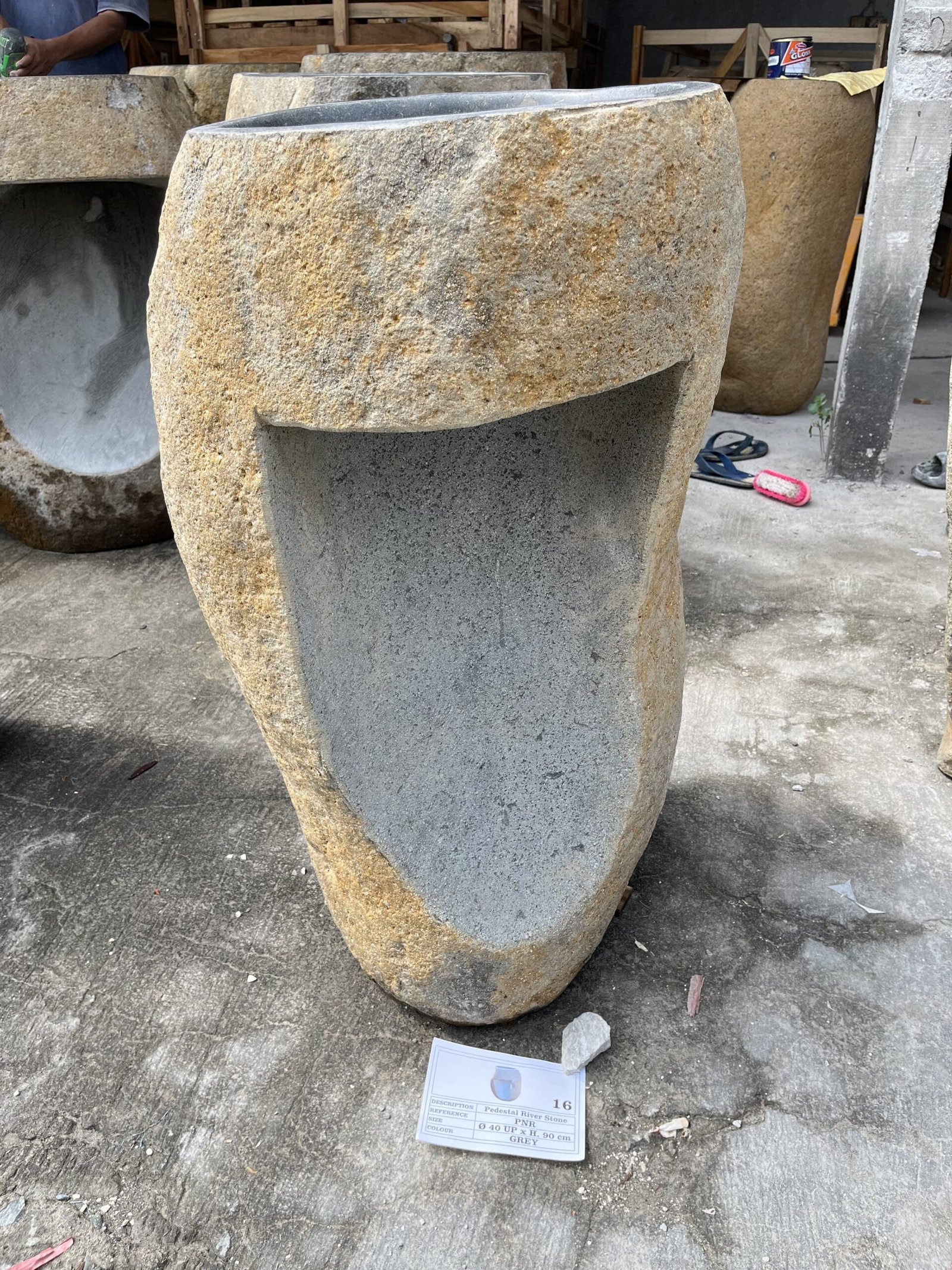 Hermosa Bacha de pedestal de piedra natural tallada en una sola piedra natural en la hermosa Indonesia.