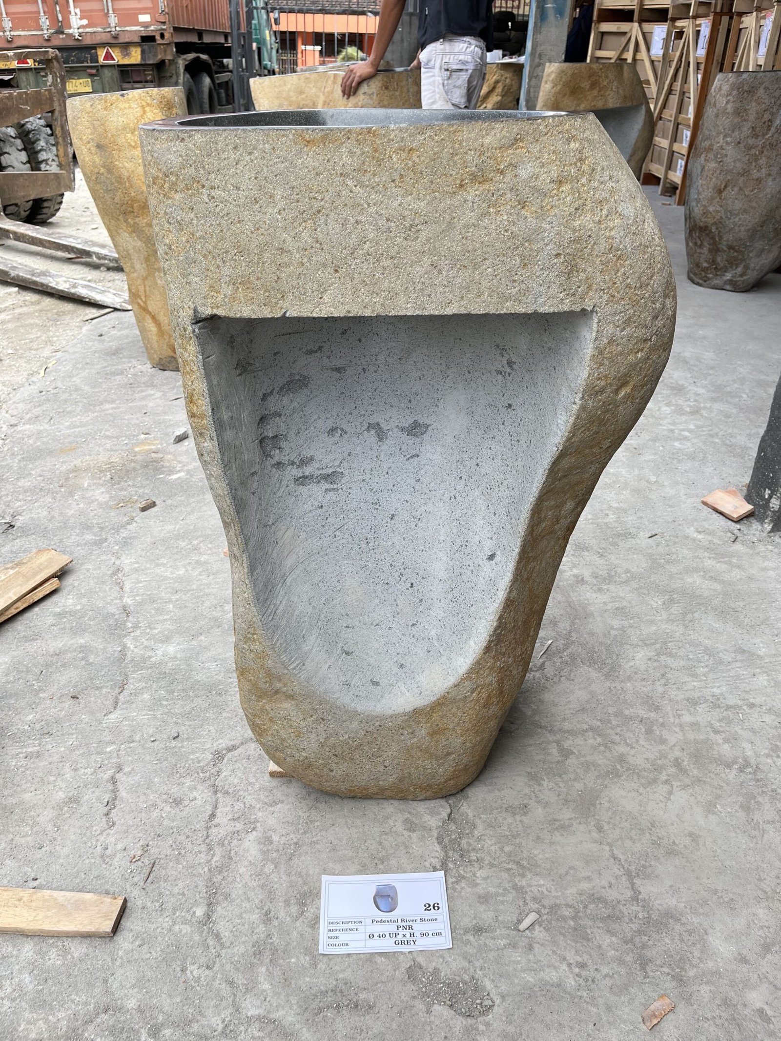 Hermosa Bacha de pedestal de piedra natural tallada en una sola piedra natural en la hermosa Indonesia.