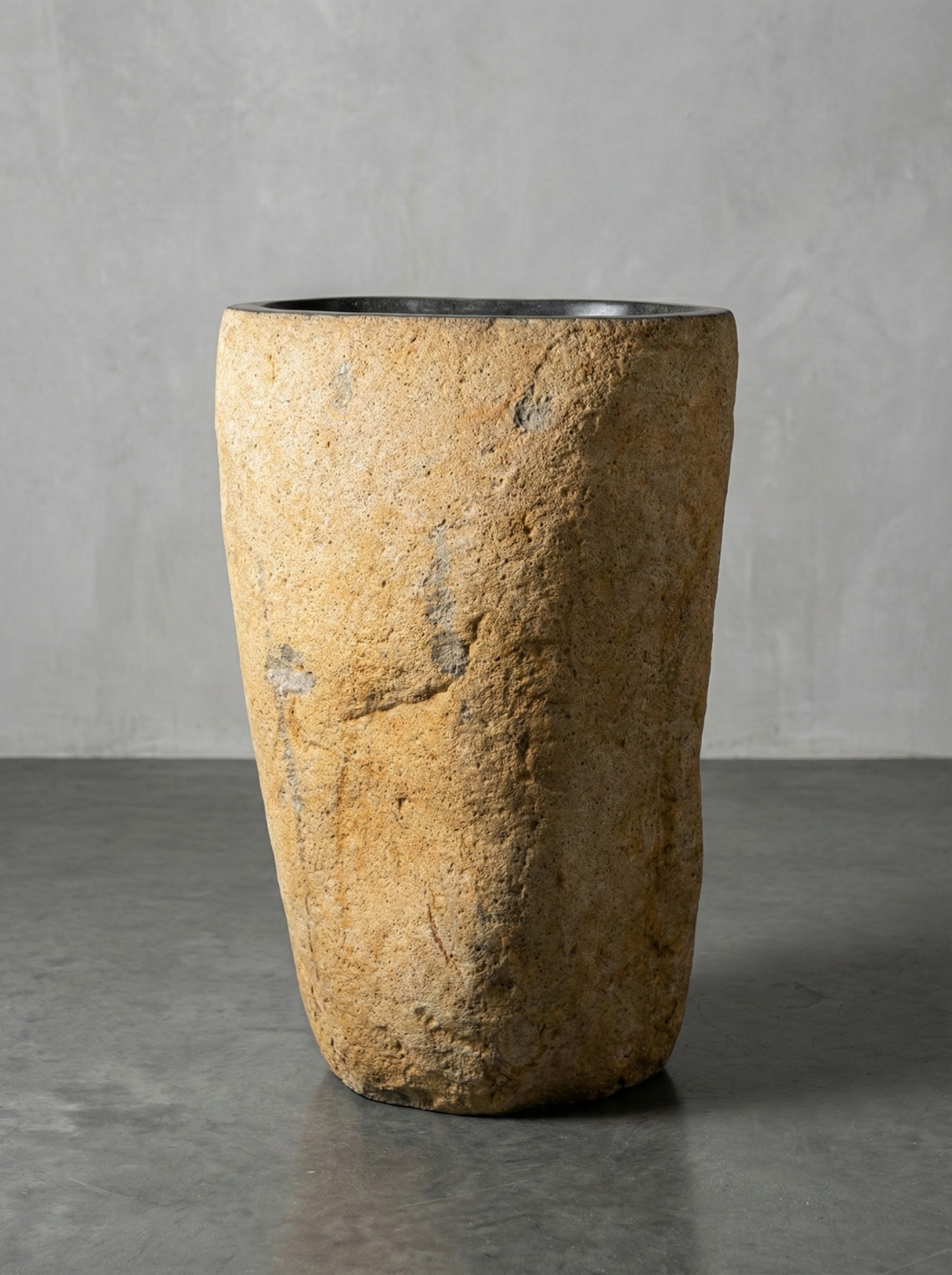 Hermosa Bacha de pedestal de piedra natural tallada en una sola piedra natural en la hermosa Indonesia.