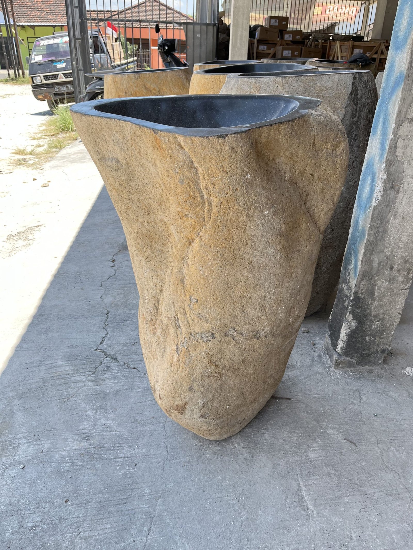 Hermosa Bacha de pedestal de piedra natural tallada en una sola piedra natural en la hermosa Indonesia.