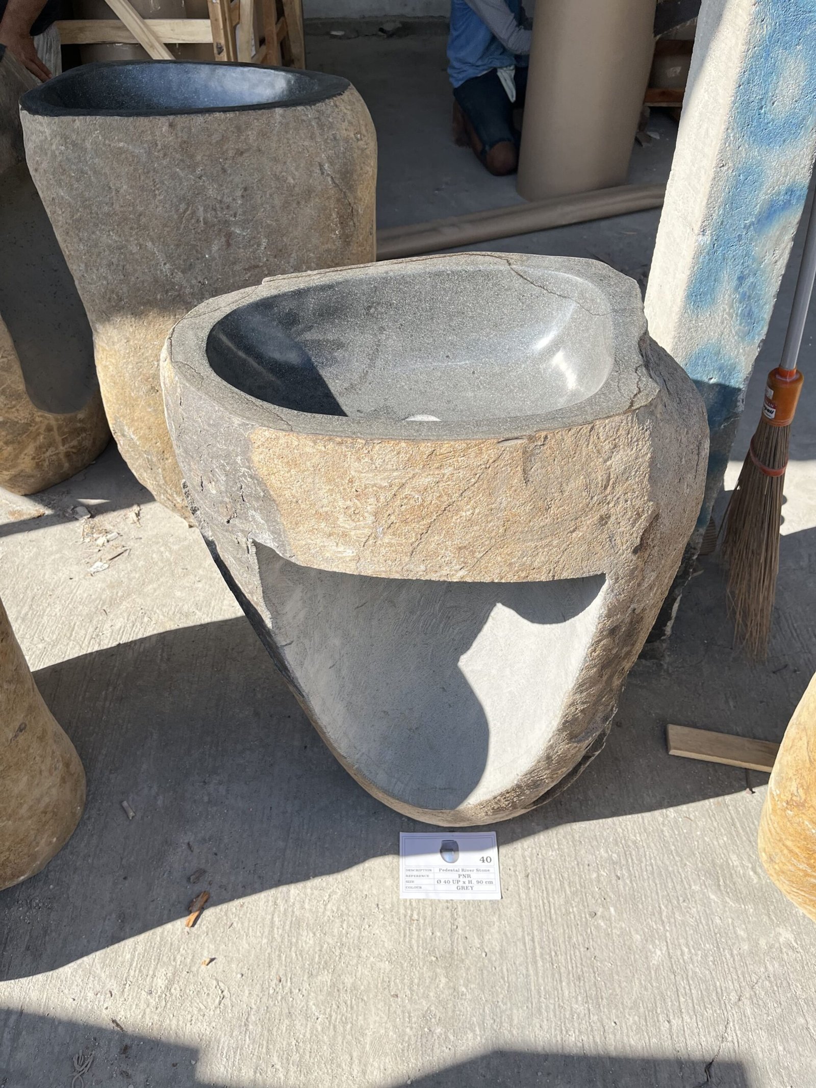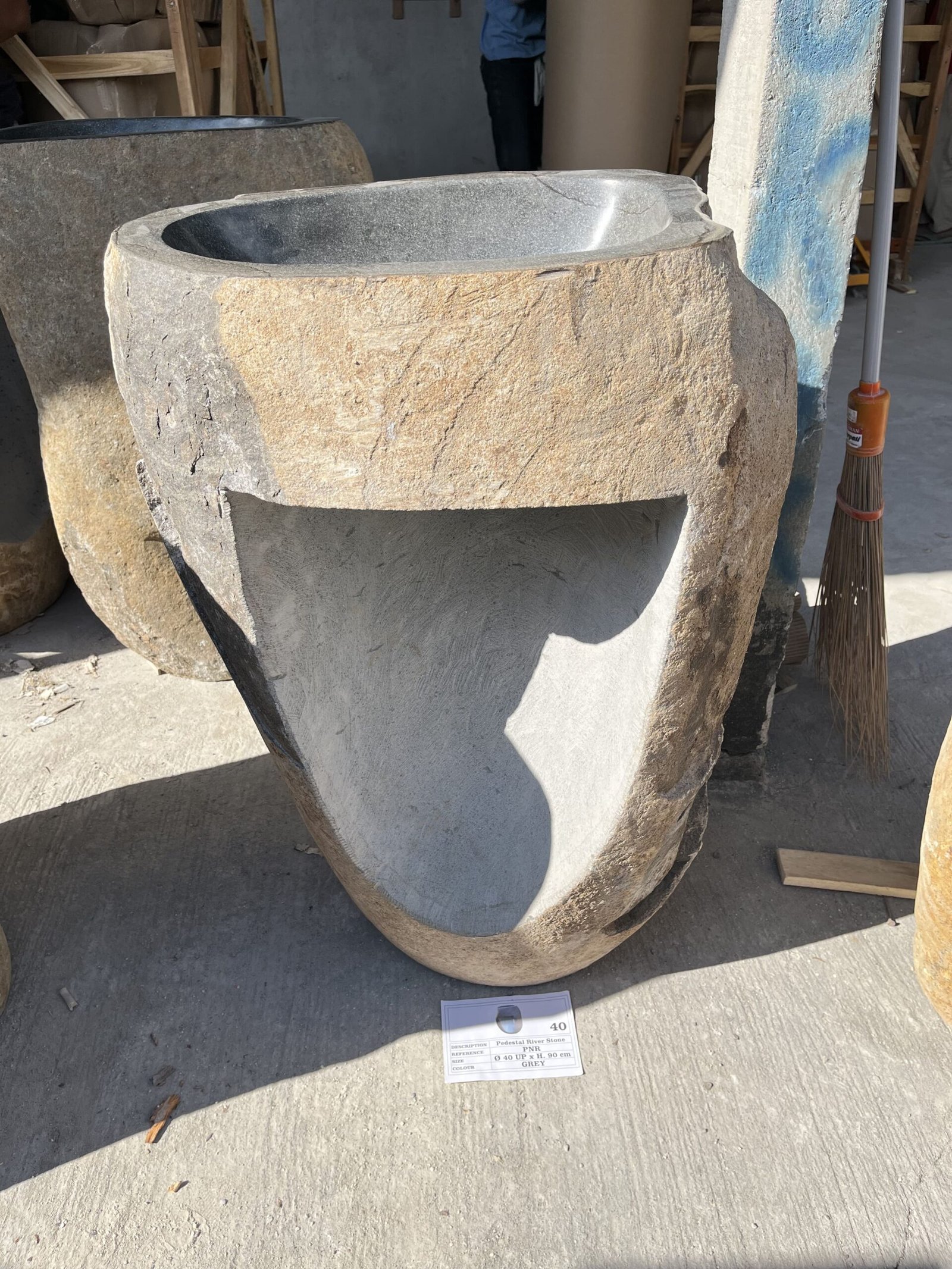 Hermosa Bacha de pedestal de piedra natural tallada en una sola piedra natural en la hermosa Indonesia.