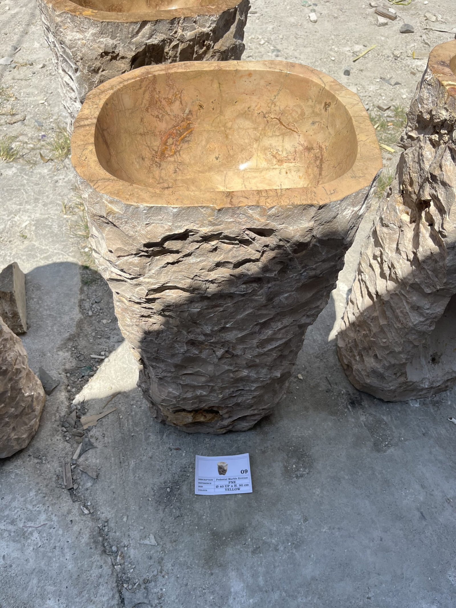 Cada pieza es única, ya que se talla a partir de una formación rocosa natural, lo que garantiza una pieza verdaderamente exclusiva para su baño.