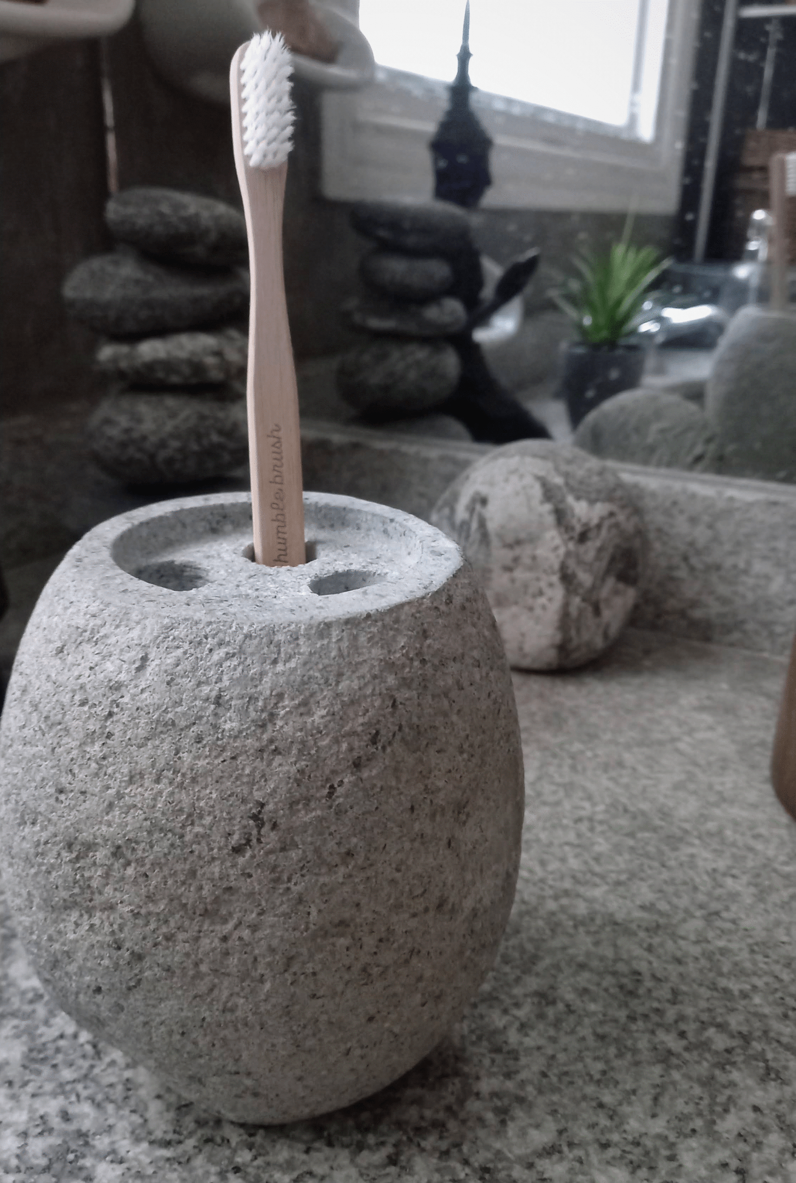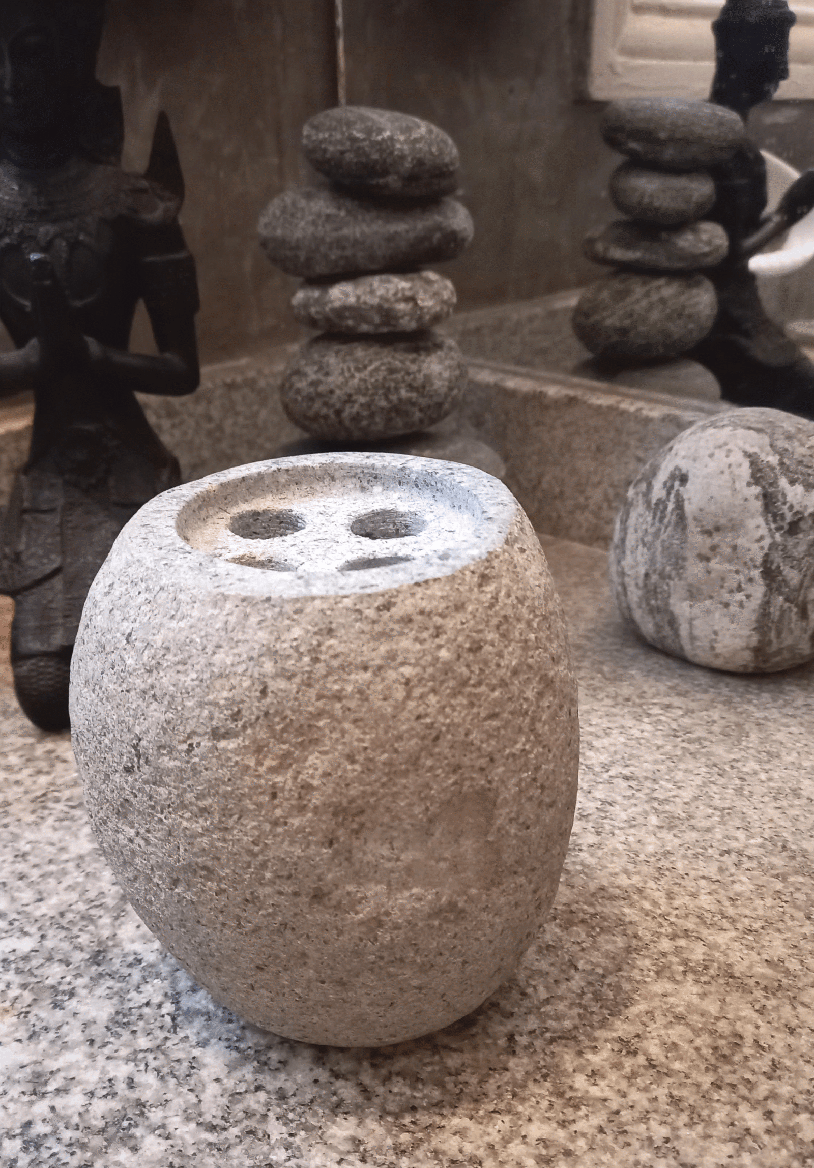 Porta cepillo de Piedra Natural tallados y pulidos a mano.
