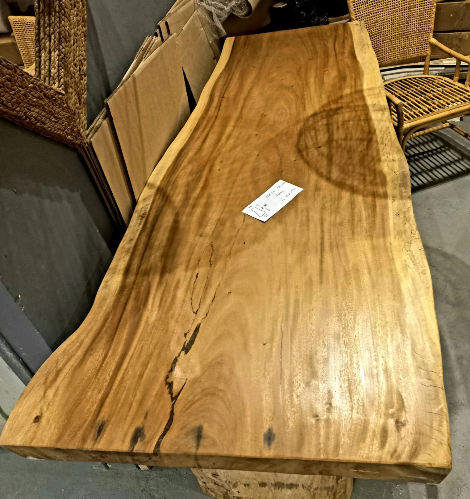 Hecho de madera de Suar, un tipo de madera dura que crece en tierras residuales o no utilizadas en toda Indonesia. No se obtienen de la selva tropical, este es un árbol de rápido crecimiento que se encuentra comúnmente en muchos lugares de Indonesia, especialmente en la isla de Java. Cuanta más demanda de esta mesa de comedor de madera dura, más personas plantan este árbol en su tierra no utilizada.